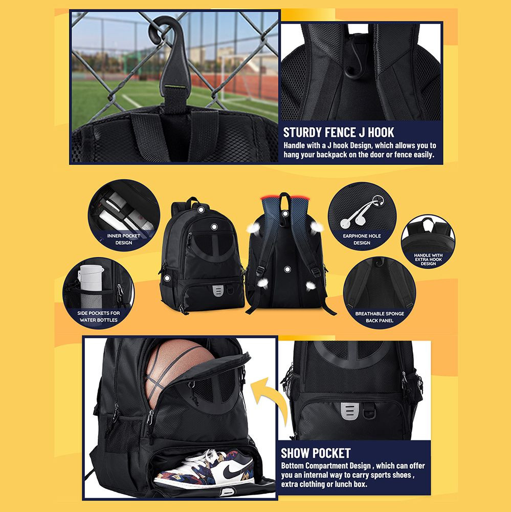 Backpack for Men Women with Ball & Shoes Compartment - fit Volleyball,Football, Sports,Travel, School, Gym