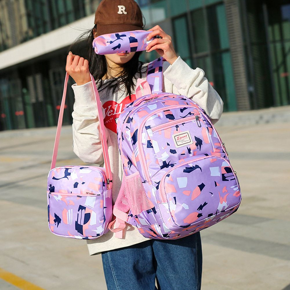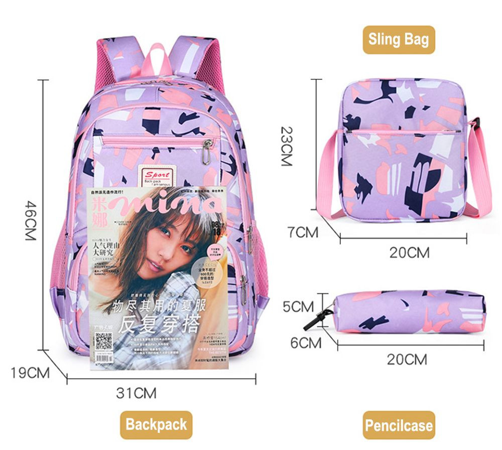 Upgrade your carrying essentials with our 3-piece student backpack set—a perfect fusion of fashion, durability, and practicality that caters to all your storage needs. This set includes 1 spacious main backpack, 1 compact sling bag, and 1 convenient pencil case, all designed with a cohesive, trendy pattern for consistent, eye-catching style.