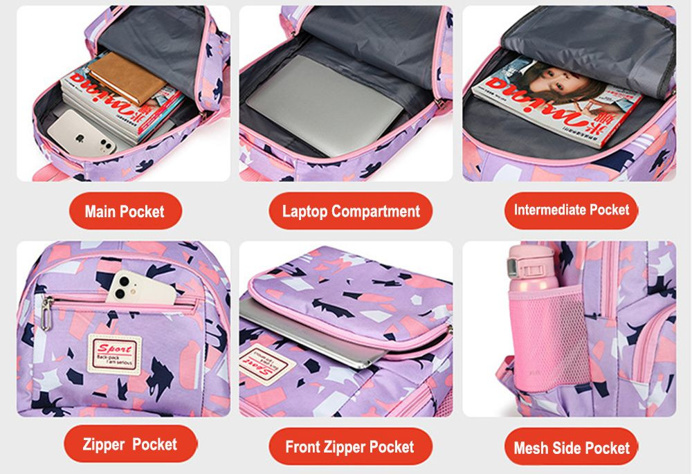 - Large-Capacity Main Backpack: The main backpack features a roomy main compartment, capable of holding textbooks, notebooks, tablets, and other daily essentials with ease.
