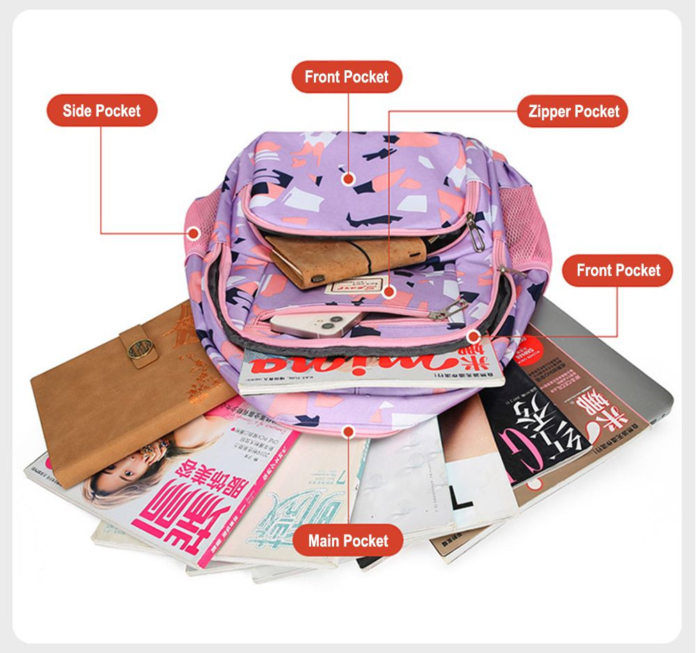 - Multi-Compartment & Versatile Storage: Equipped with multiple inner/outer pockets (including front zip pockets and side mesh pockets), it keeps small items (stationery, water bottles, umbrellas, personal accessories) neatly organized and easily accessible.