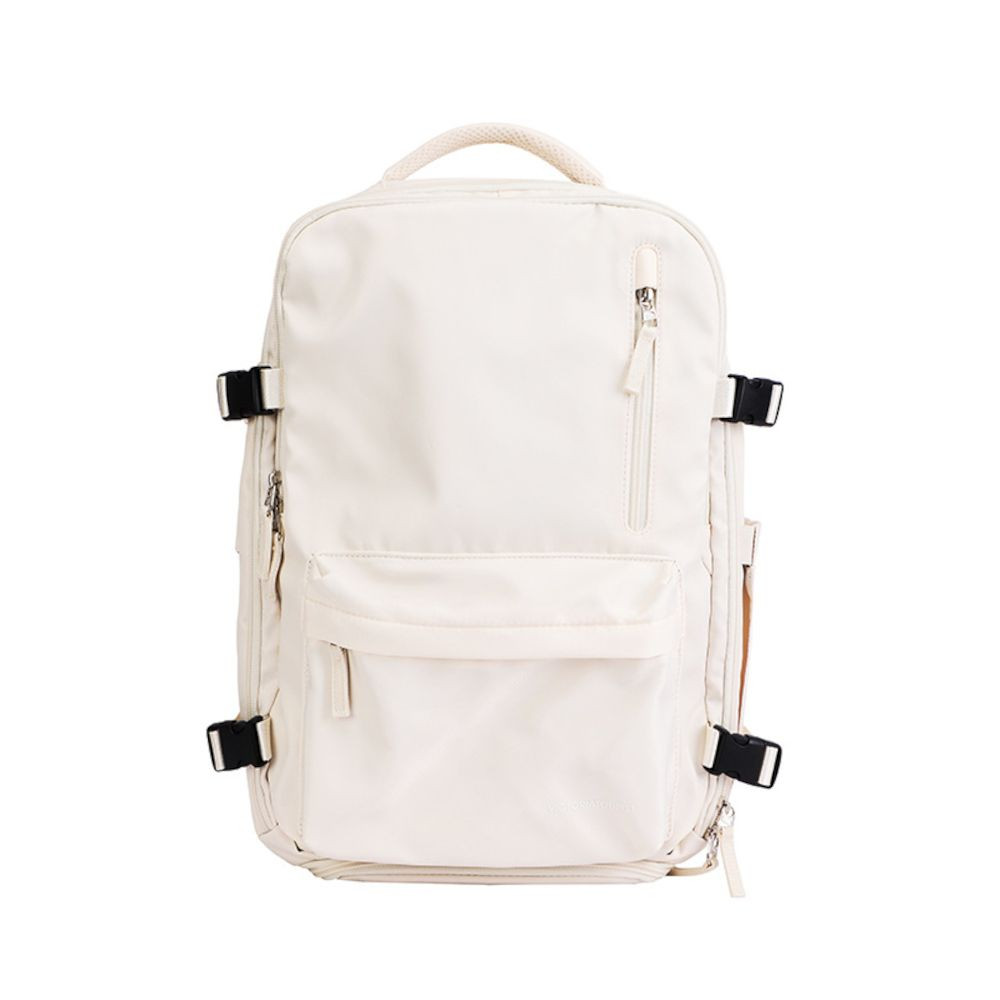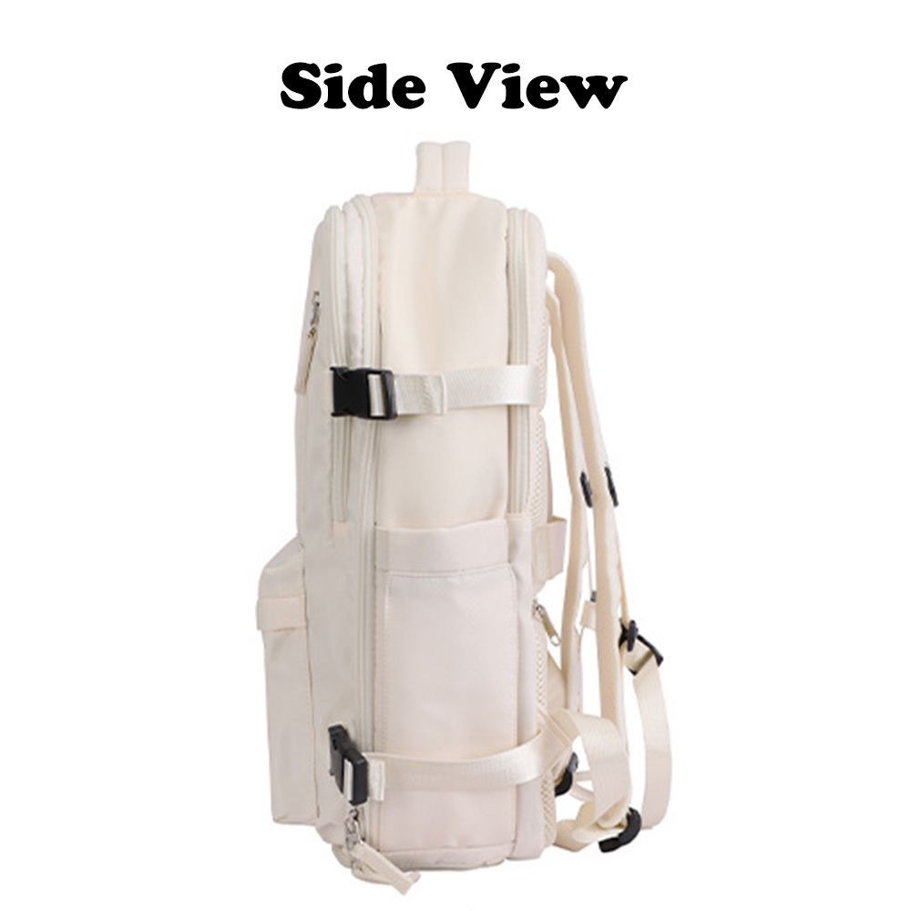 In a sleek white color, this backpack combines a modern, minimalist design with functional details (like contrast black buckles). It suits various occasions—whether you’re heading to class, the office, or a weekend outing—adding a trendy touch to your outfit.